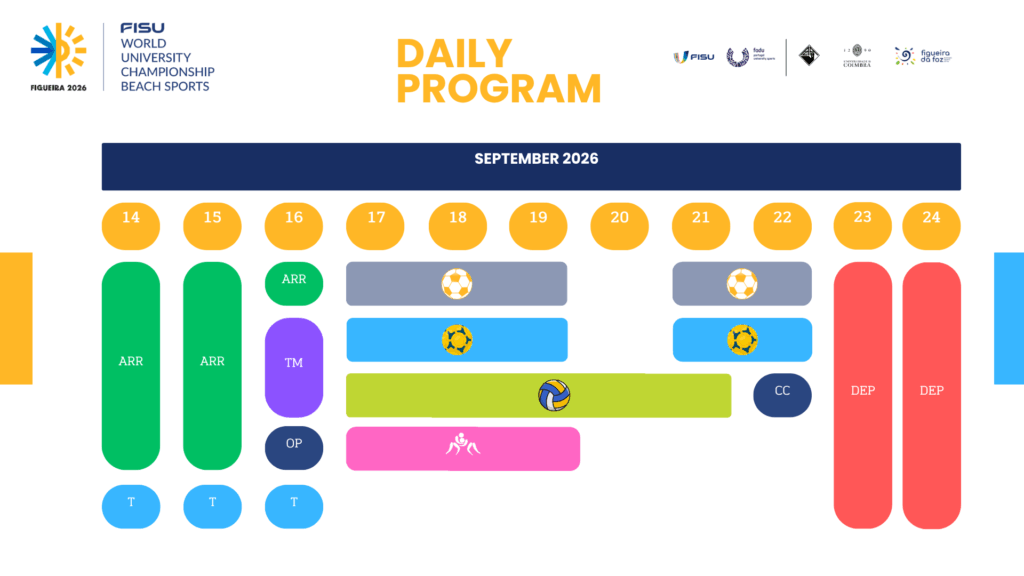 Competitions will take place in venues carefully selected to provide the best possible conditions for athletes and spectators alike. Each site reflects the host country’s commitment to university sport, offering high-quality facilities in a setting designed for international events.